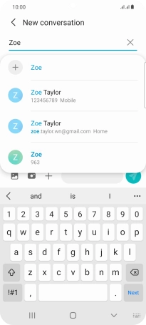 Press the search field and key in the first letters of the recipient's name.