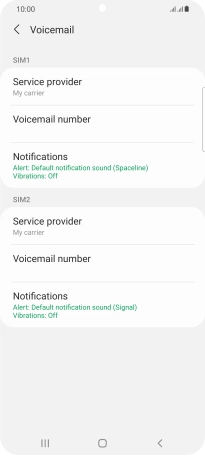Press Voicemail number below the required SIM.