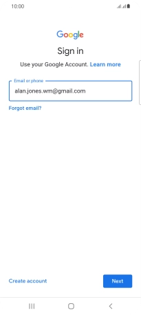 If you don't have a Google account, press Create account and follow the instructions on the screen to create an account.