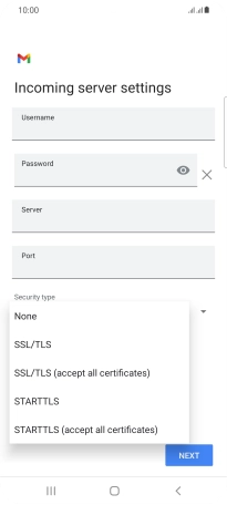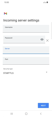 Press the field below "Server" and key in the name of your email provider's incoming server.