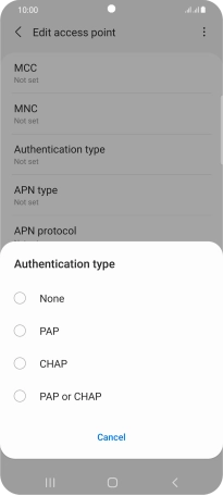 Press Authentication type.