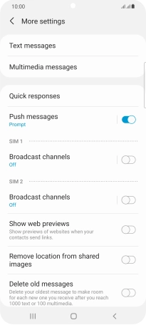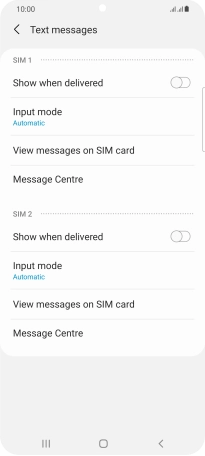 Press Message Centre below the required SIM.