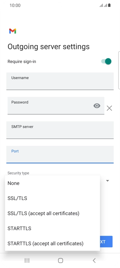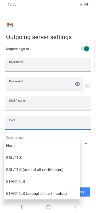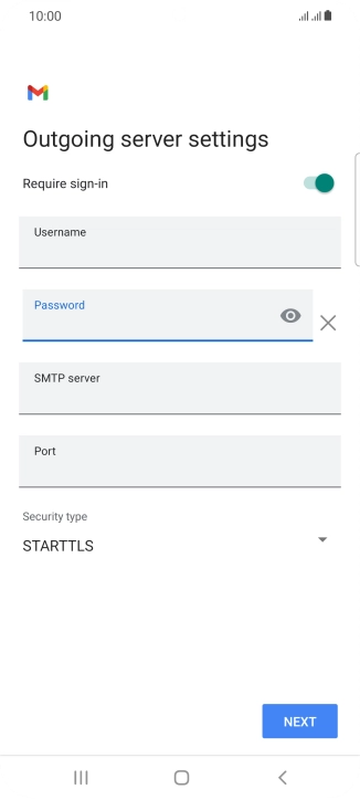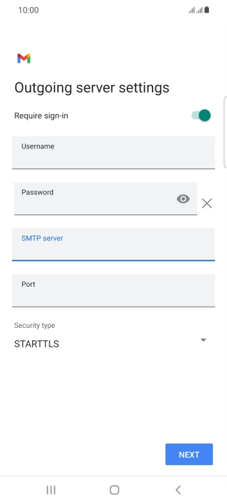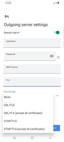 Press the field below "Username" and key in the username for your email the email provider's outgoing server.