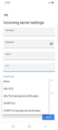 Press the field below "Server" and key in the name of your email provider's incoming server.