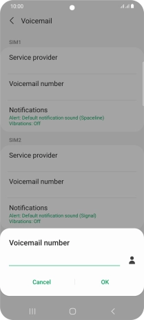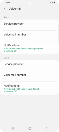 Press Voicemail number below the required SIM.
