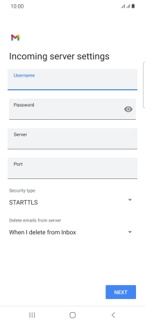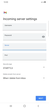 Press the field below "Server" and key in the name of your email provider's incoming server.