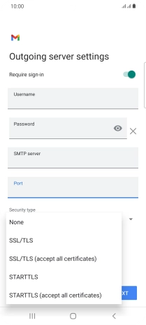 12. Enter outgoing server