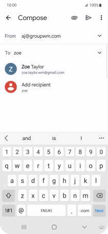 Press the text input field and write the text for your email message.