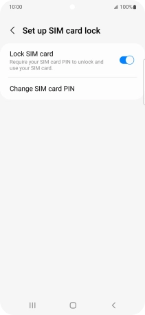Press the indicator next to "Lock SIM card" to turn the function on or off.