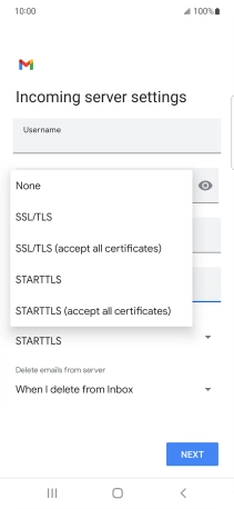 Press the field below "Server" and key in the name of your email provider's incoming server.