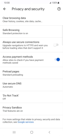Press Privacy and security.