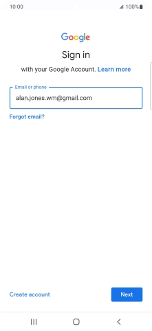 If you don't have a Google account, press Create account and follow the instructions on the screen to create an account.