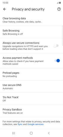 Press Privacy and security.