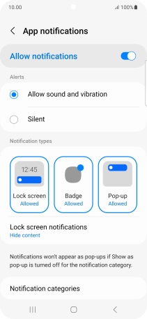 Press Notification categories.