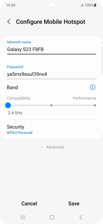 Press WPA3-Personal to password protect your Wi-Fi hotspot.