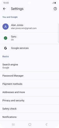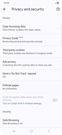 Press Privacy and security.