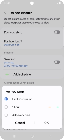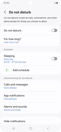 Press Add schedule and follow the instructions on the screen to select settings for automatic activation of Do Not Disturb.