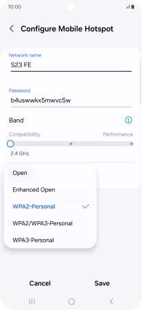 Press WPA3-Personal to password protect your Wi-Fi hotspot.