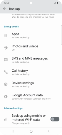 Press the indicator next to "Back up using mobile or metered Wi-Fi data" to turn the function on or off.