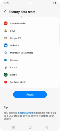 Press Factory data reset.