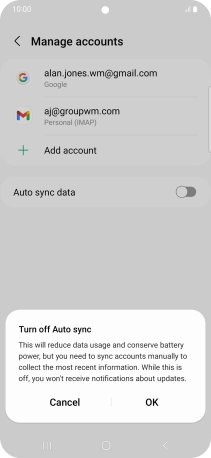 Press the indicator next to "Auto sync data" to turn the function on or off.