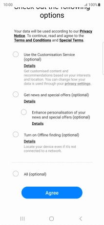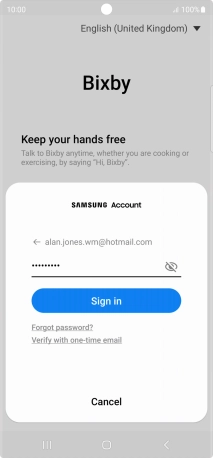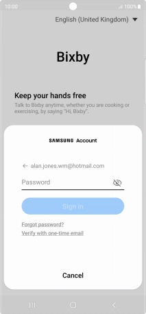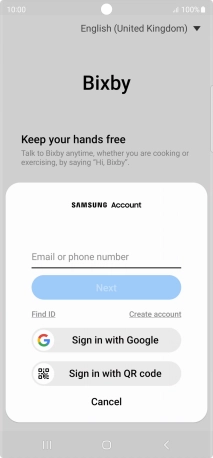 If you don't have a Samsung account, press Create account and follow the instructions on the screen to create an account.