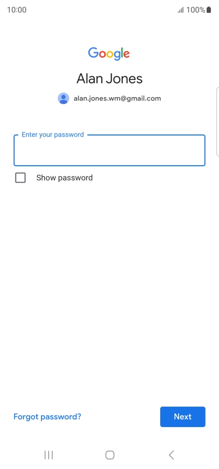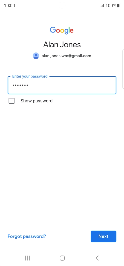If you don't have a Google account, press Create account and follow the instructions on the screen to create an account.