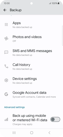 Press the indicator next to "Back up using mobile or metered Wi-Fi data" to turn the function on or off.