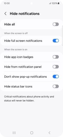 Press the indicators next to the required settings to turn display of the selected notification types on or off.