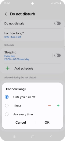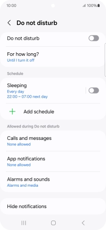 Press Add schedule and follow the instructions on the screen to select settings for automatic activation of Do Not Disturb.