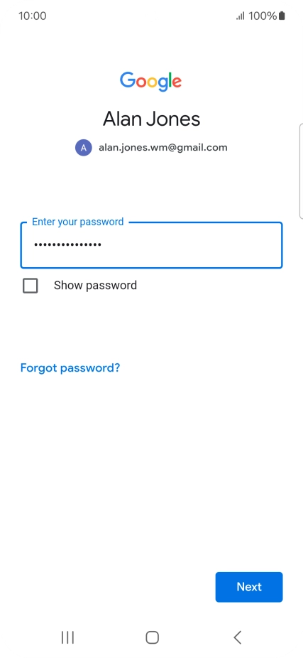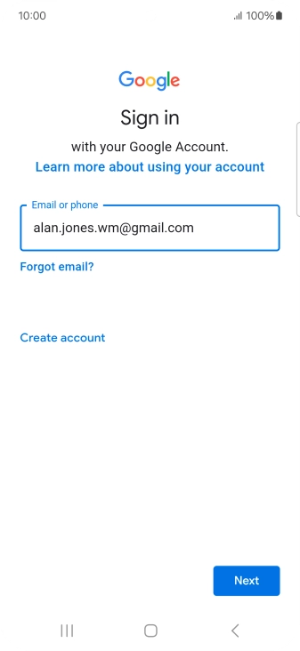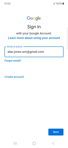 If you don't have a Google account, press Create account and follow the instructions on the screen to create an account.