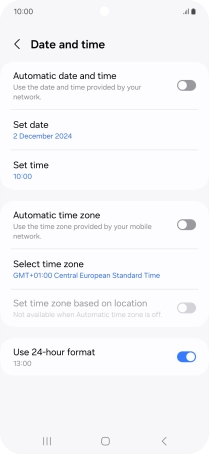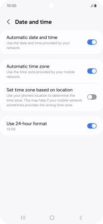 Press the indicator next to "Automatic date and time" to turn on the function.