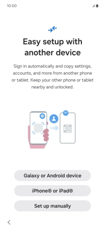 Press the required setting to transfer content from another device or press Set up manually.