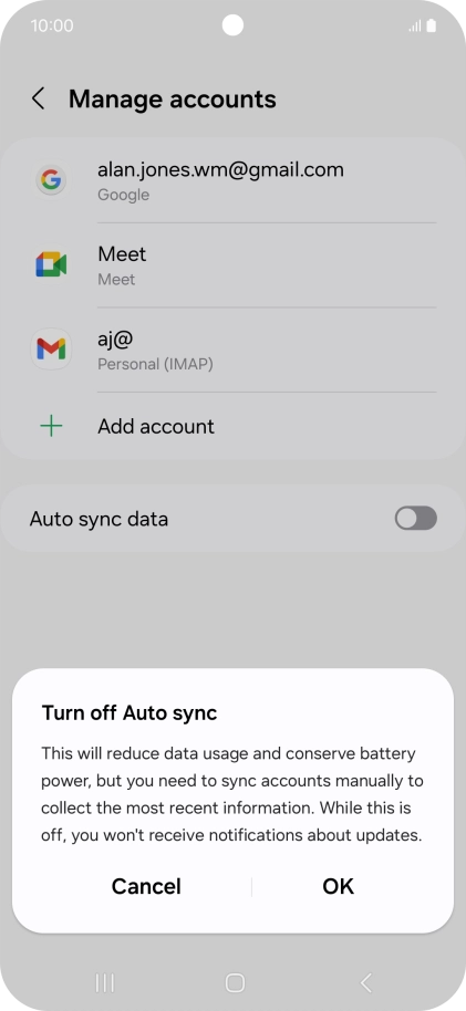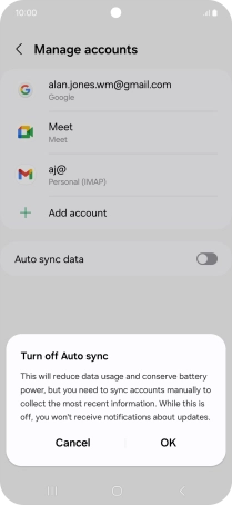 Press the indicator next to "Auto sync data" to turn the function on or off.