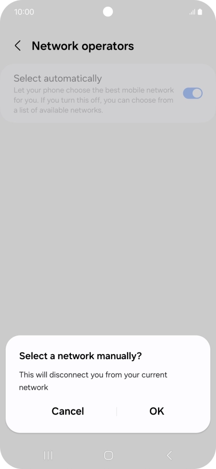 Press the indicator next to "Select automatically" to turn off the function and wait while your phone searches for networks.