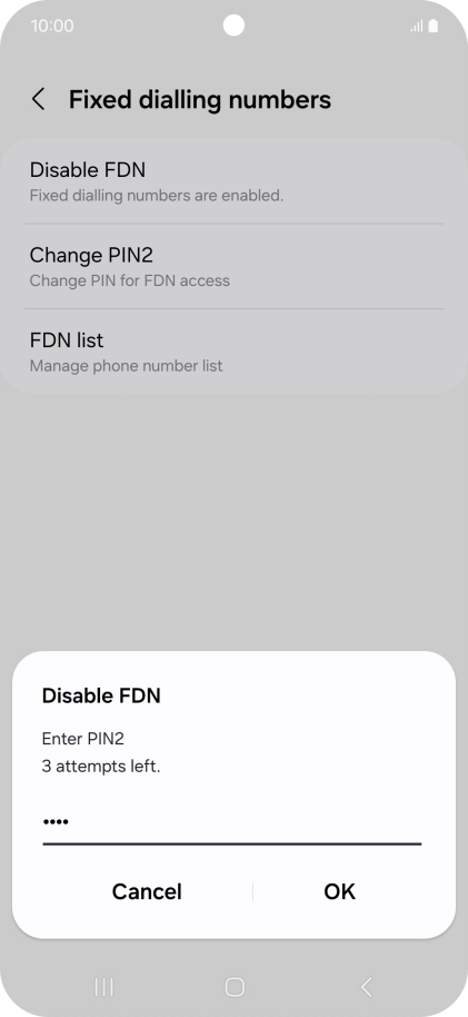 Key in your PIN2 and press OK. The default PIN2 is 1111.