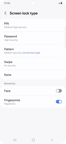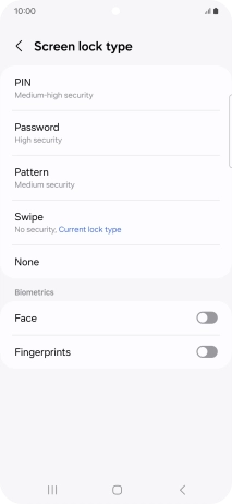 Press Screen lock type and key in the additional phone lock code you created earlier.