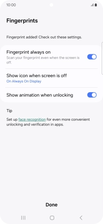 Follow the instructions on the screen to create the phone lock code using your fingerprint.