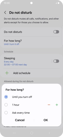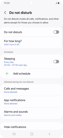 Press Add schedule and follow the instructions on the screen to select settings for automatic activation of Do Not Disturb.