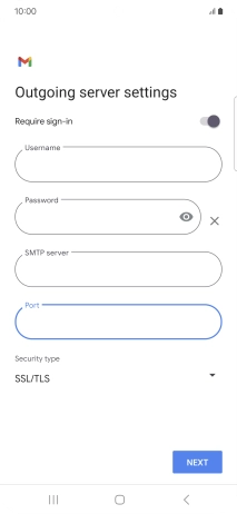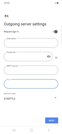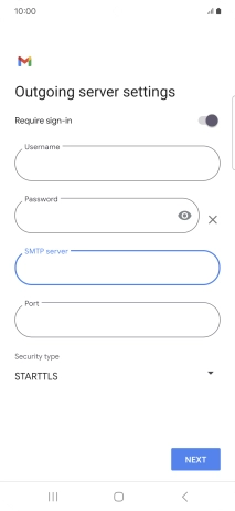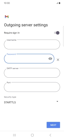 Press the field below "Username" and key in the username for your email the email provider's outgoing server.