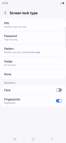 Press Screen lock type and key in the additional phone lock code you created earlier.