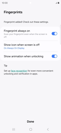Follow the instructions on the screen to create the phone lock code using your fingerprint.