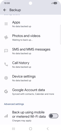 Press the indicator next to "Back up using mobile or metered Wi-Fi data" to turn the function on or off.