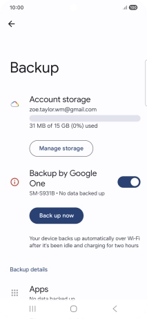 Press the indicator next to "Backup by Google One" to turn on the function.
