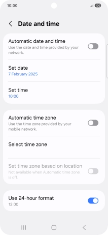 Press the indicator next to "Automatic date and time" to turn on the function.
