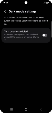 If you select Custom schedule, follow the instructions on the screen to select the required period of time for dark mode.