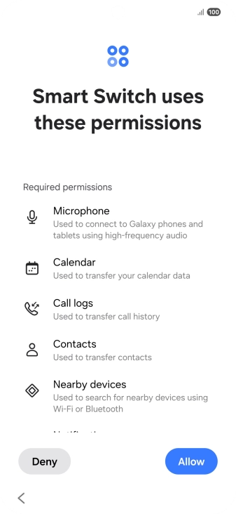 Press the required setting and follow the instructions on the screen to transfer the content from another phone.