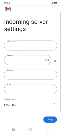 Press the field below "Server" and key in the name of your email provider's incoming server.