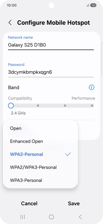 Press WPA3-Personal to password protect your Wi-Fi hotspot.