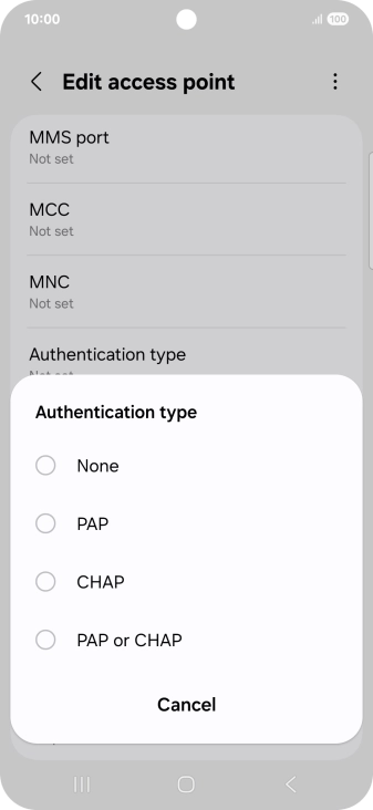 Press Authentication type.